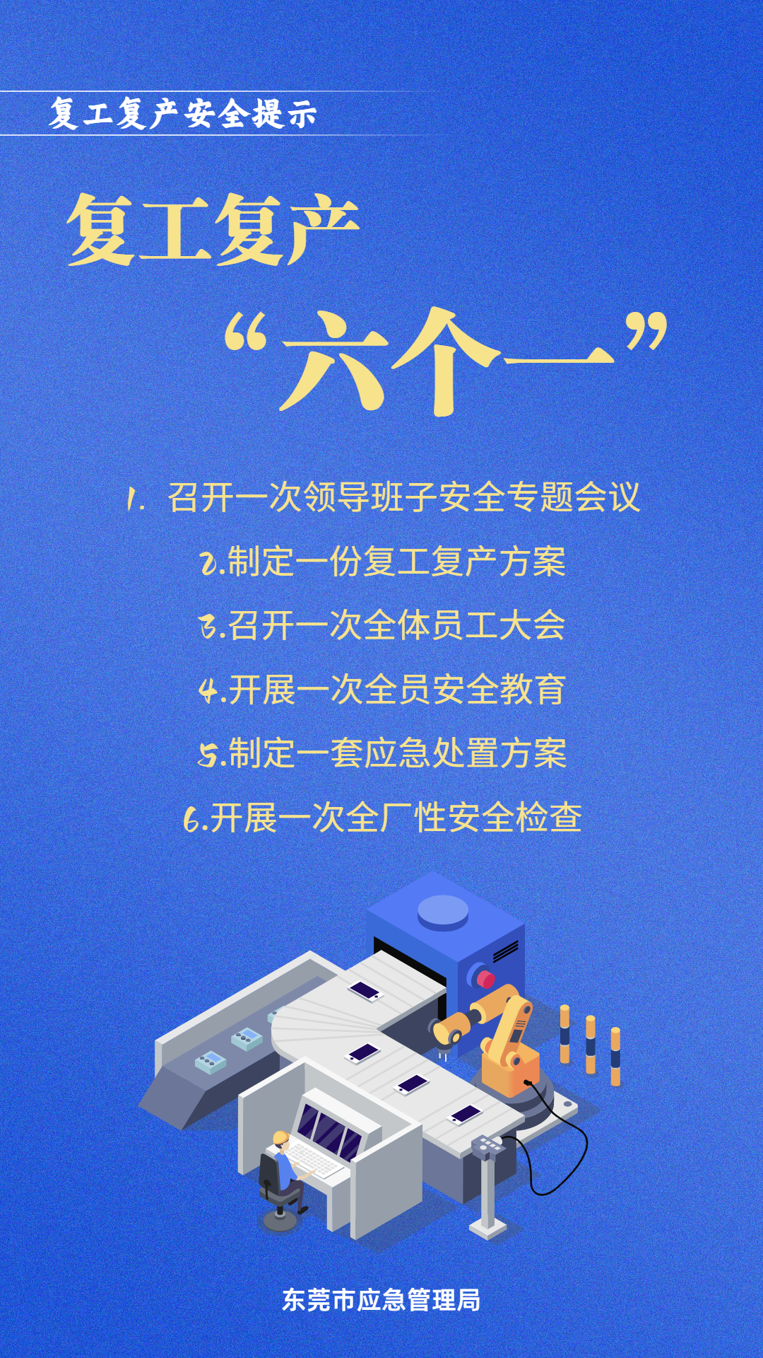 當(dāng)前仍處于節(jié)后復(fù)工復(fù)產(chǎn)高峰時(shí)期,企業(yè)生產(chǎn)各環(huán)節(jié)安全風(fēng)險(xiǎn)依舊存在!企業(yè)復(fù)工復(fù)產(chǎn)時(shí)要提高警惕,消除風(fēng)險(xiǎn)隱患。安全生產(chǎn)才是最大的效益和生產(chǎn)力,以下圖片復(fù)工復(fù)產(chǎn)安全提示還請銘記于心!